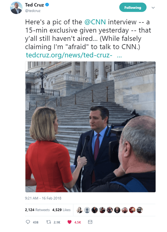 CNN claims Senator Cruz is afraid to talk to them, but they already did an interview with him and won’t air it on TV