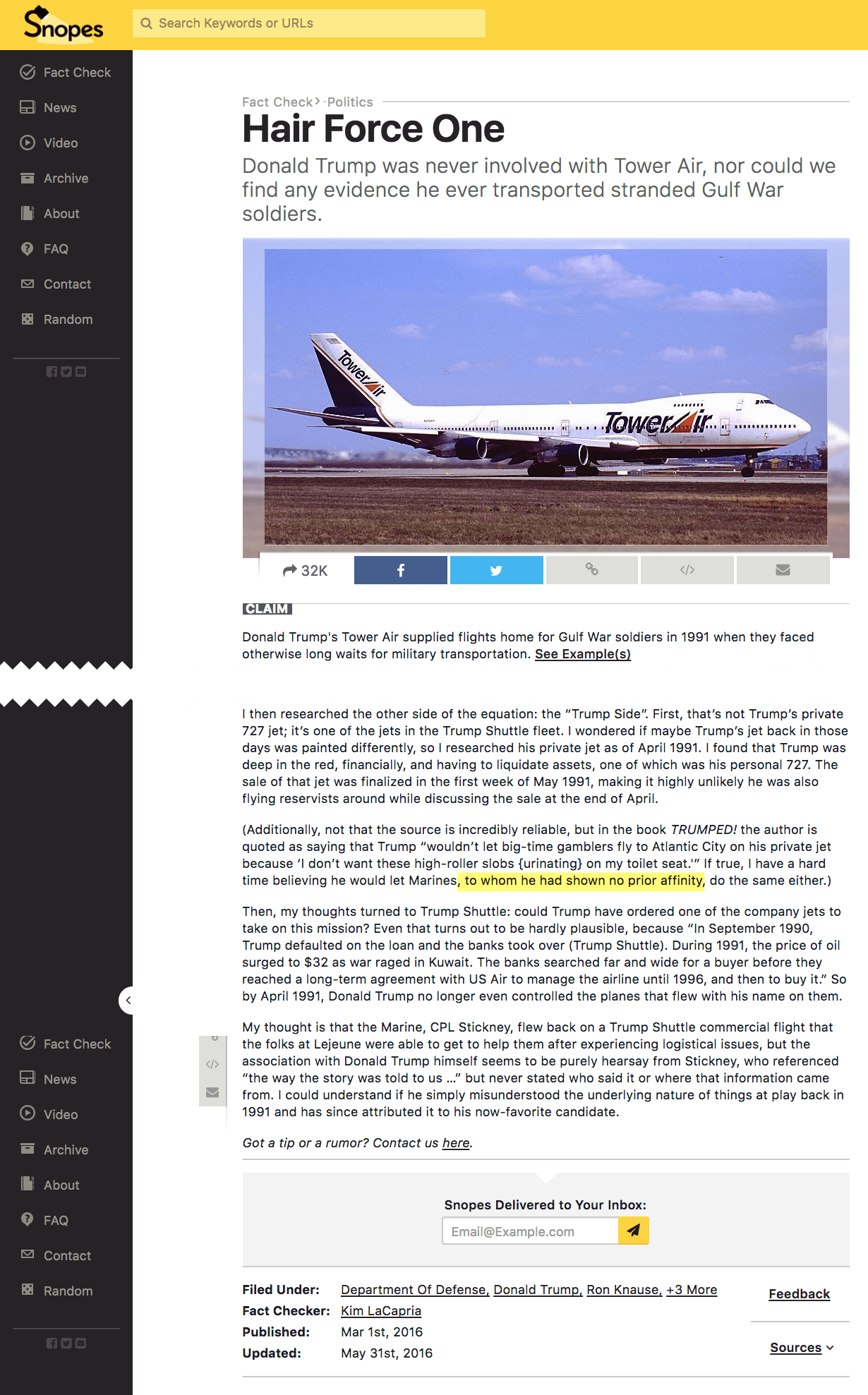 Snopes makes a false claim about Trump showing no prior interest in the Marines